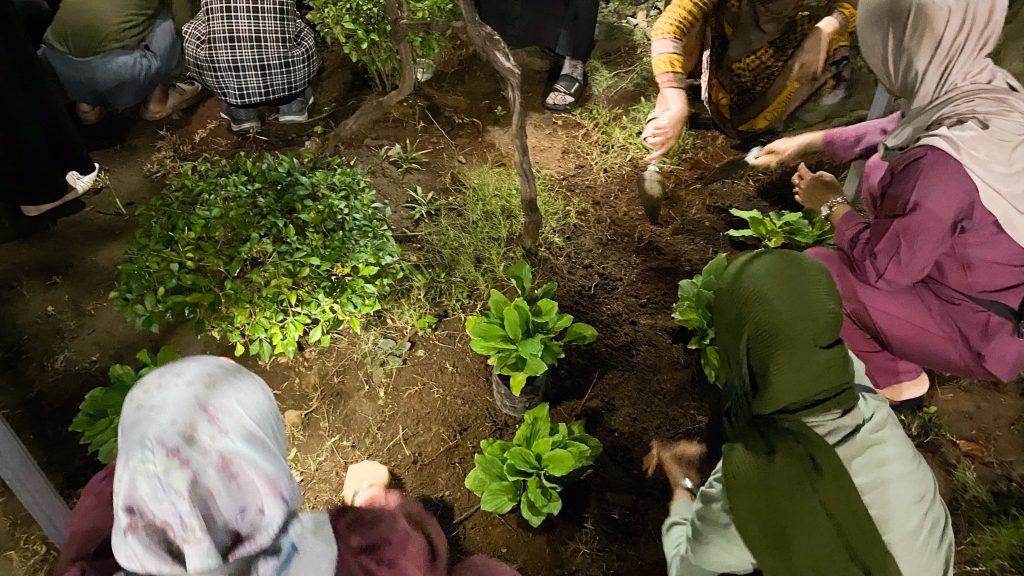 Setelah sesi materi, kegiatan dilanjutkan dengan praktik langsung penanaman bibit TOGA. Peserta diajak menanam jahe, kunyit, temulawak, dan sereh di sekitar pendopo desa, sekaligus menerima bibit untuk ditanam di pekarangan rumah masing-masing. Tim juga menyajikan contoh pengolahan hasil TOGA, salah satunya pudding jahe, yang bisa menjadi inspirasi dalam pemanfaatan tanaman herbal dalam bentuk kuliner sehat.